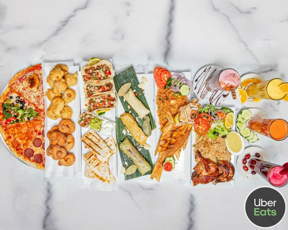 Good for 3-4 people. Bursting with flavors: Dates, Pakora, 1 Rotisserie Chicken, Peruvian Fried Rice, Lahori Fish and Rasmalai. Perfect for sharing!